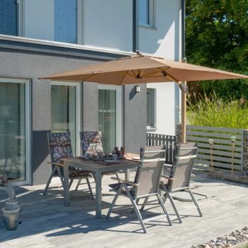 Parasole ogrodowe to bardzo uniwersalne rozwiązanie, które świetnie sprawdzi się na tarasie czy balkonie. Choć nie chroni przed niesprzyjającymi warunkami pogodowymi równie skutecznie jak taras zadaszony pergolą czy markizą, większe modele wystarczą, by zapewnić cień nad miejscem do wypoczynku czy osłonić bawiące się w ogrodzie dzieci przed słońcem. Dla możliwie jak największego komfortu użytkowania warto wybrać regulowany parasol, którego ustawienie można dostosować do kąta padania promieni słonecznych.