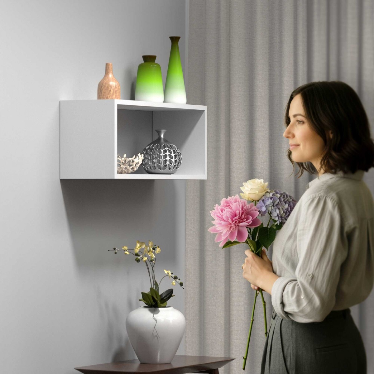 ✅ Montaż w pionie lub w poziomie – możliwość dopasowania ustawienia półki do układu ściany oraz indywidualnej koncepcji aranżacyjnej.