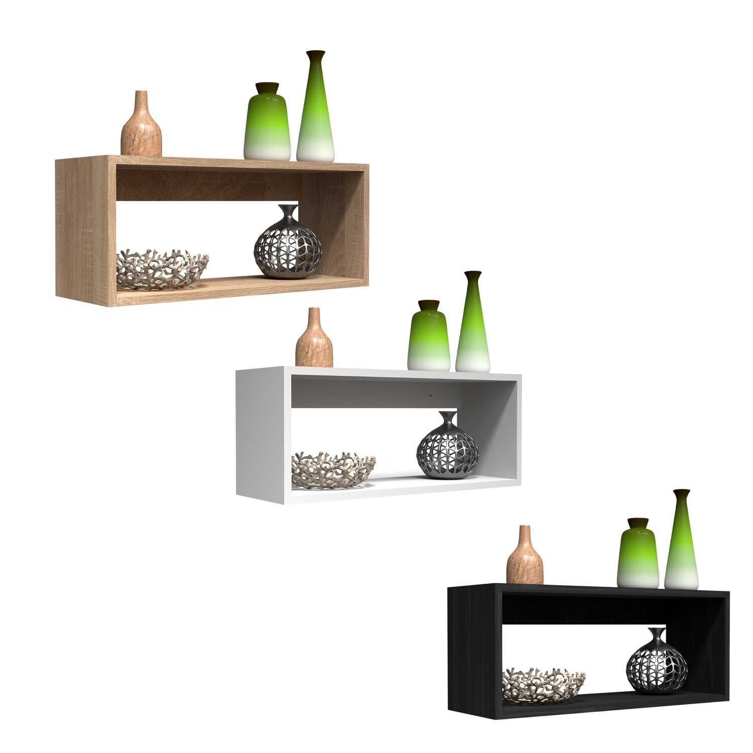 Półka wykonana została z trwałej płyty wiórowej, pokrytej dwustronnym papierem melaminowym, co zapewnia estetyczne wykończenie oraz odporność na codzienne użytkowanie. Model FTS 5 dostępny jest w trzech uniwersalnych kolorach: biały, dąb sonoma oraz czarny, dzięki czemu łatwo dopasować go do różnych stylów wnętrz – od nowoczesnych po klasyczne.