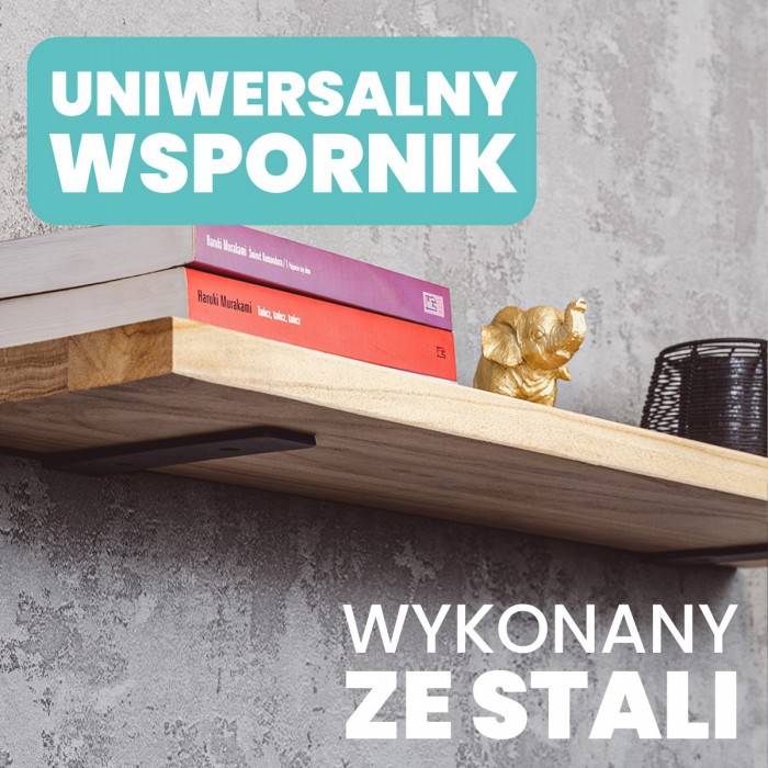 Dzięki prostemu, lecz funkcjonalnemu kształtowi wspornik zapewnia stabilne podparcie dla półek, zarówno w domowych wnętrzach, jak i biurach czy przestrzeniach komercyjnych. Świetnie komponuje się z drewnem, metalem czy szkłem, tworząc eleganckie, a zarazem trwałe rozwiązanie. Idealny do montażu półek na książki, dekoracje czy rośliny.